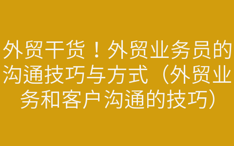 在贸易往来中,谈判十分重要,特别是外贸行业,与老外谈判那更是不易。 在与客户沟通过程中,业务员一定要学会了解客户的心里想法,拿准客户的关切点,妥善处理好客户的关切所在,才能顺利将业务向前…